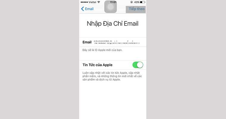 Bước 7: Nhập Email của bạn rồi nhấn Tiếp theo