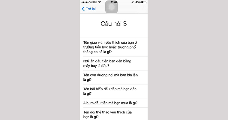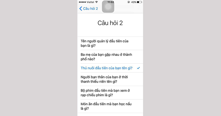Bước 10: Chọn câu hỏi bảo mật thứ hai