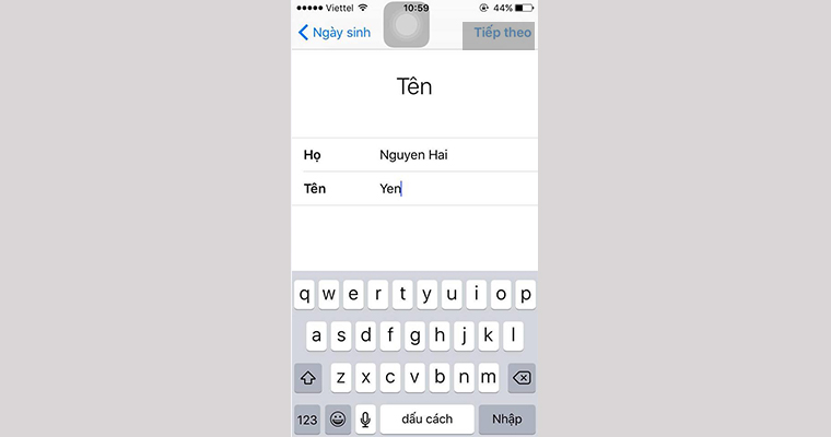 Bước 5: Nhập Họ Tên rồi nhấn Tiếp theo