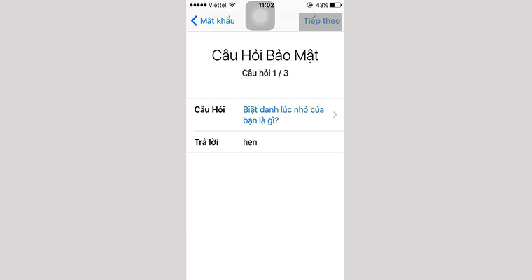 Bước 11: Trả lời câu hỏi bảo mật thứ ba và nhấn Tiếp theo